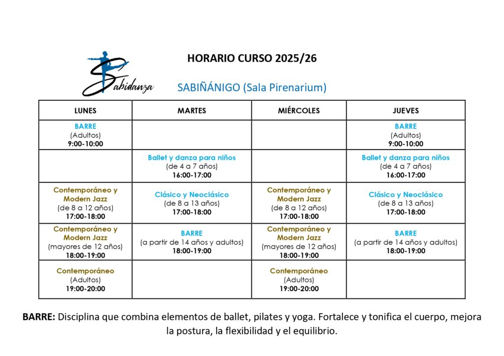 Se imparten clases de técnica clásica y contemporánea para diferentes niveles y edades. También hay clases para adultos.